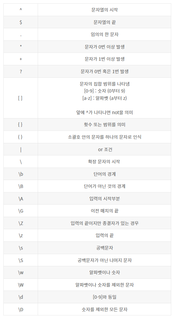 정규식은 문자열에서 특정 문자 조합을 찾기 위한 패턴이다.